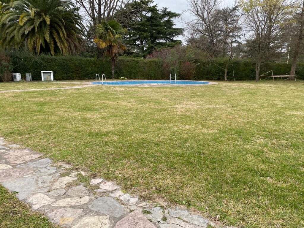 3 Dormitorios, Cocina Comedor (diaria), Living Comedor, baño, galería (baño, lavadero), Quincho, Parrilla, Horno, Pileta de natación (forma riñón de material); Piso Granito.