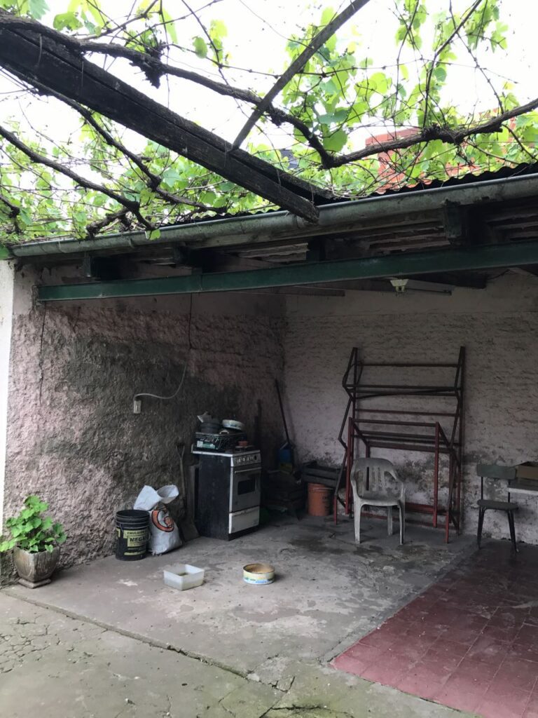 2 dormitorios 5×5, cocina living comedor 5×8, 2 baños (1 afuera y 1 adentro), garaje, 2 locales 6×6, 1 habitación de deposito