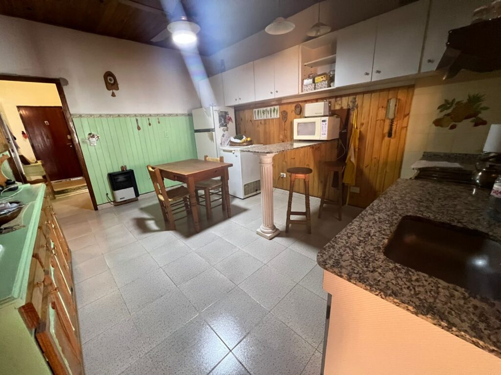 Cocina con barra comedor 4.52 x 3.57. Cielo raso de madera/loza.