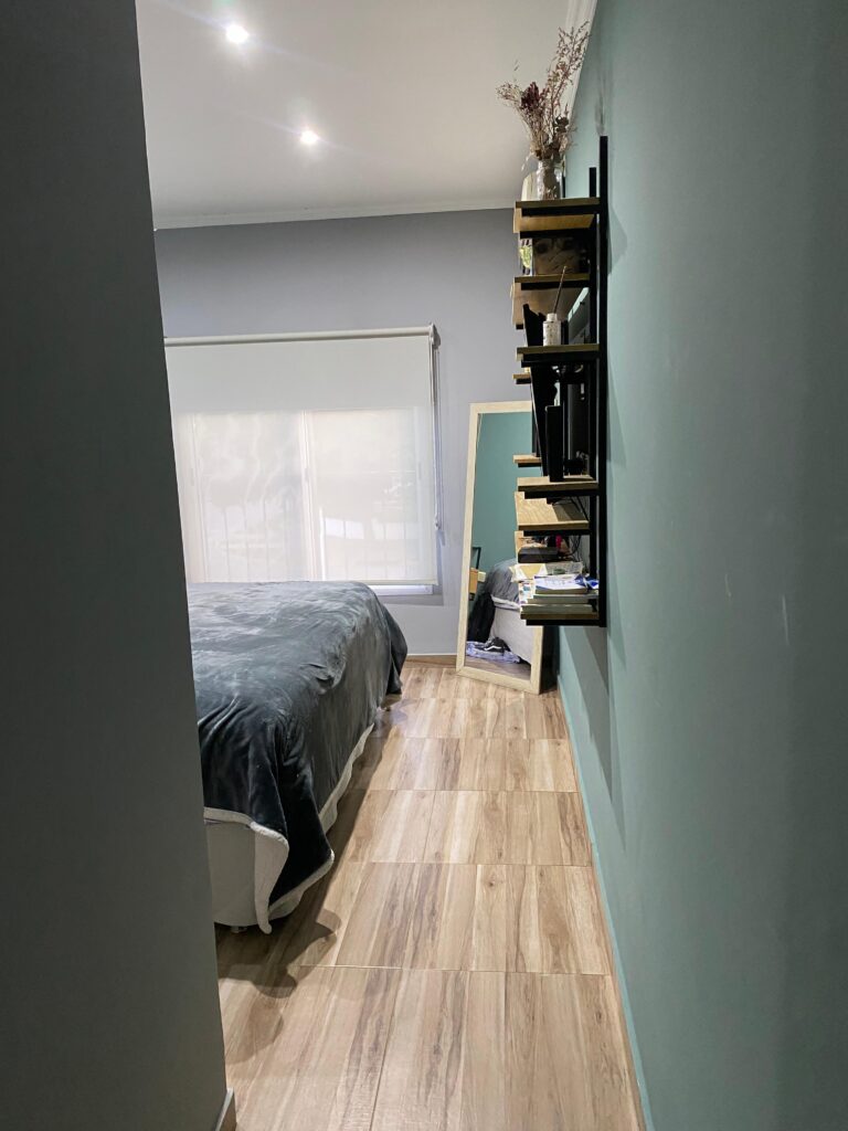 Dormitorio contra frente, sup. 2.37m x 3.02m, con placar empotrado.