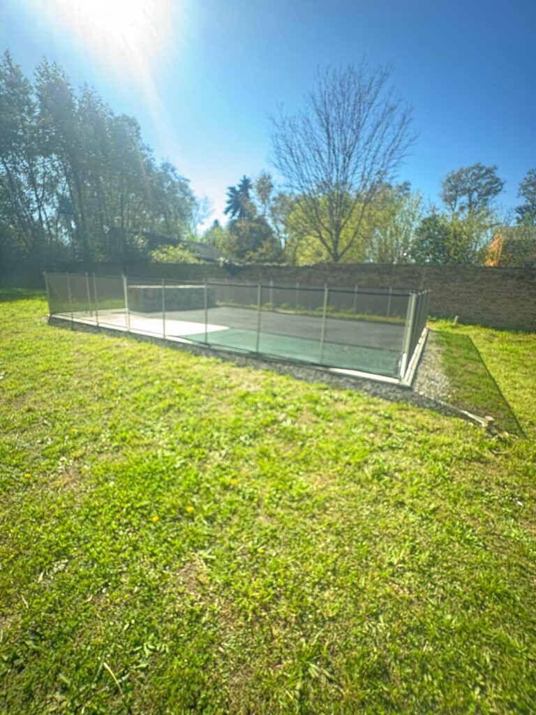 Pileta de material, con playa húmeda, sup. 7.00m x 3.00m. Con cascada.