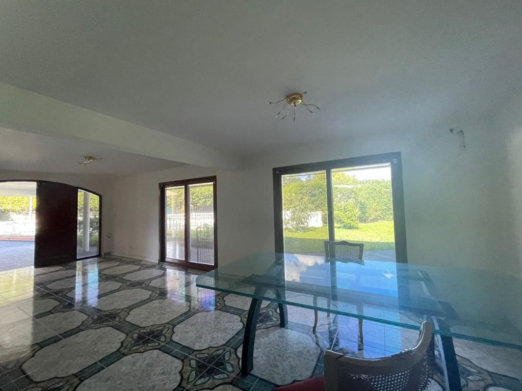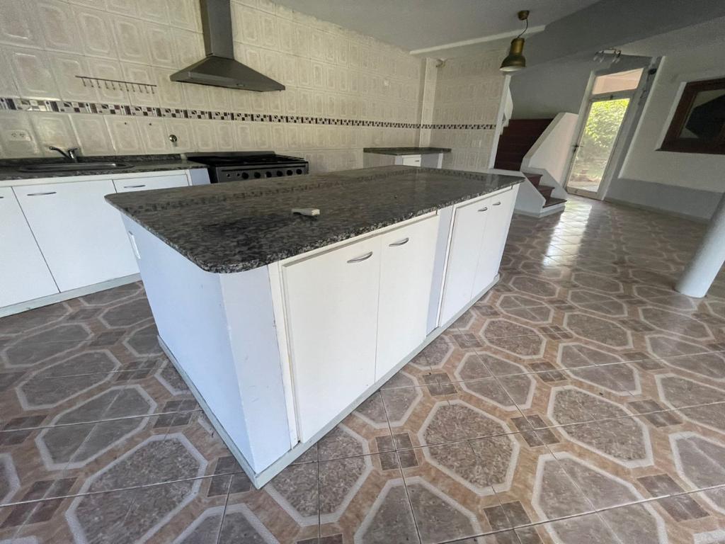 PB: Cocina/comedor, living, toilette, quincho/galería con isla. Pileta de material, sala de máquina/galpón. Patio amplio, entrada de vehículo.