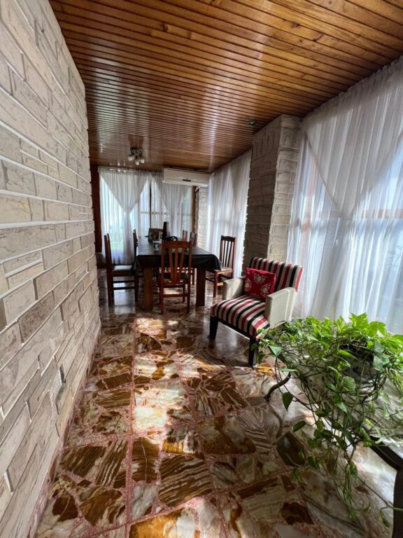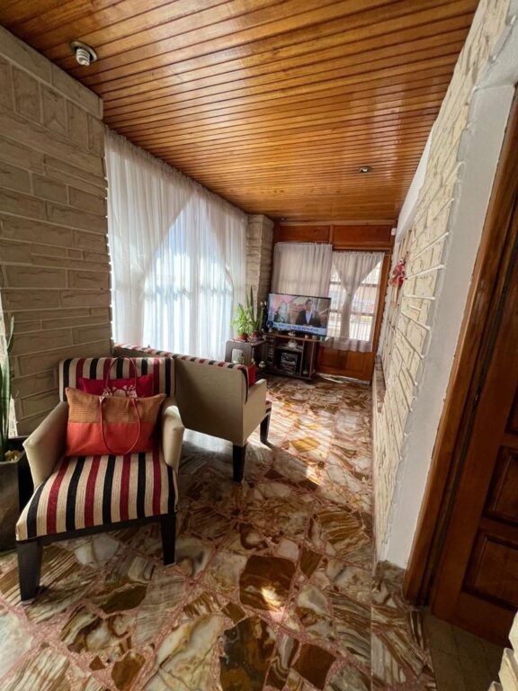 Techo de tejas c/ ruberoi y estructura de tablas/ cielo raso de madera (pinotea)