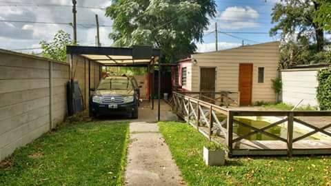 3 habitadiones, baño, living, cocina comedor c. barra, patio interno, pileta tipo riñon de fibra, galpón adelante